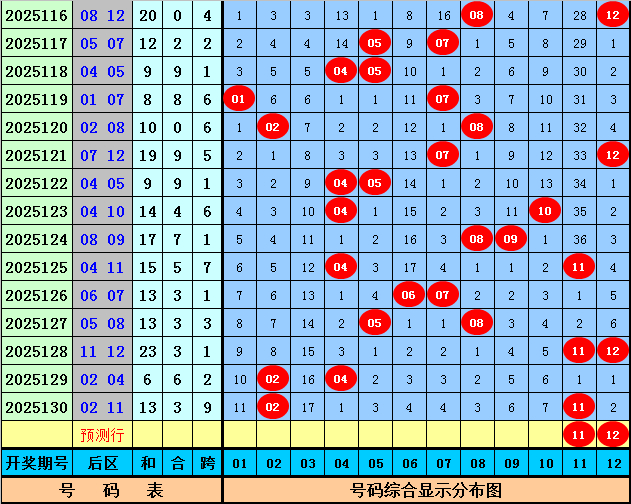 后区号码分析:在第131期历史同期开奖中奖,奖号02 03 07出现5次,奖号06 11 12出现4次,奖号04 05出现2次,奖号01 08 10出现1次,奖号09没有出现。本期后区五码参考02、07、09、11、12。